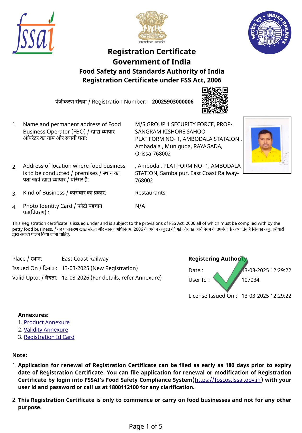 Food License Certificate